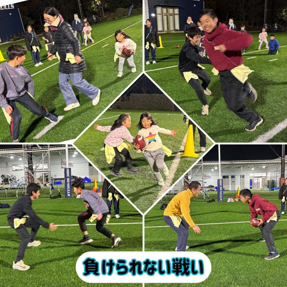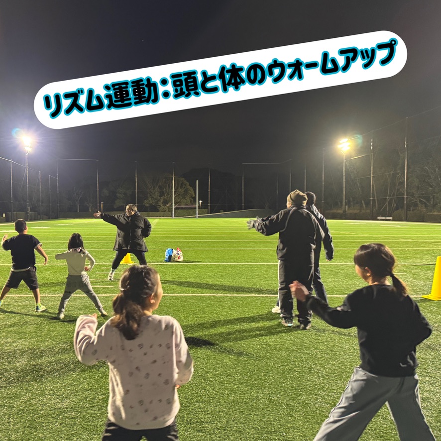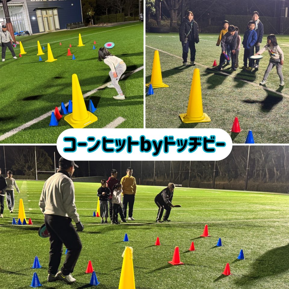 第8回「スポーツで遊ぶ日」開催しました(1/21開催) 2026年1月23日 イベント・教室 毎月実施している「スポーツで遊ぶ日」、今回は第8回目の開催となりました。この日は15名が参加。寒さが一段と厳しくなり、「外で体を動かすのはちょっと…」と思ってしまうほどの冷え込みでした。 そんな中でも、半袖・半ズボンで元気に参加する小学生の姿が!薄着で思わず心配になってしまいますが、子どもたちはまさにエネルギーのかたまり。寒さをものともせず、終始グラウンドを走り回っていました。 ■ ウォームアップ:リズム運動で一気にスイッチON 最初のプログラムは、ウォームアップを兼ねた「リズム運動」。音楽に合わせてステップを踏みながら、手の動きもプラスしてリズム良く体を動かします。手と足を同時に動かすため、自然と頭もフル回転。体も気持ちも一気に温まり、良いスタートとなりました。 ■ フラッグフットボール:1on1タッチダウン対決 続いてはフラッグフットボール。1対1でディフェンスにフラッグを取られず、タッチダウンできるかを競います。 中学生は切れ味抜群の動きでディフェンスをかわし、さすがのプレーを披露。一方、大人同士の対戦は、どこか微笑ましいソフトな攻防戦となりました。 ■ コーンヒットbyドッヂビー:狙って当てろ! 次は「コーンヒットbyドッヂビー」。大小3種類のカラーコーンを狙ってドッヂビーを投げ、当てたコーンを獲得。コーンごとに点数が異なり、合計得点の高いチームが勝利となります。 投げ方や軌道を工夫しながら、いかに狙ったコーンに当てられるか。シンプルながらも戦略性のあるゲームで、白熱した展開となりました。 ■ 宝物探しゲーム:走って探して大混乱!? 続いては「宝物探しゲーム」。グラウンドに約70個のカラーコーンをランダムに設置し、その中にお宝を隠します。お宝は1点・2点・5点・10点の4種類。 4チームに分かれ、順番にコーンを開けてお宝を集めます。序盤は次々とお宝が見つかりますが、途中からは空振り続出。「本当にお宝あるの〜!?」と疑いの視線が向けられる場面もあり、笑いが絶えませんでした。 ■ 締めくくりはモルック! 最後は定番の「モルック」。回を重ねるごとに、みんなの腕前も確実にレベルアップ。子どもたちはスーパーショットを連発し、お母さんたちも見事な1本倒しを披露。 そろそろチームを組んで大会出場…?そんな声も聞こえてきそうな盛り上がりでした。 ■ 次回のお知らせ 今回も、たくさんの“ゆるスポ”を通して、笑顔あふれる時間を過ごすことができました。 次回開催は、2月18日(水)です。寒さに負けず、気軽に体を動かしに来てください。皆さんのご参加をお待ちしています!