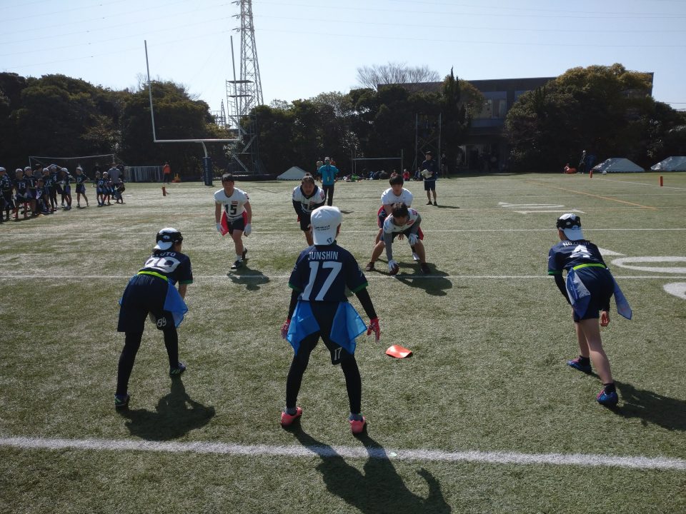 【活動レポート】ジュニアシーガルズ(小学生)3/11(土)、3/12(日) 2023年3月13日 オービックシーガルズジュニア(小学生) 【日時/場所】 3/11(土) 8:00~練習&卒団記念試合@オービック習志野グラウンド 3/12(日) 9:00~6年生オールスター@帝京大学八王子グラウンド 15:30~練習@オービック習志野グラウンド 【参加人数】 3/11(土) ジュニアシーガルズ 約60名+トップチーム選手&コーチ 18名 3/12(日) 6年生オールスター:ジュニアシーガルズはじめ南関東地区現6年生 約120名 練習:現5年生以下 約50名 【活動内容】 3/11(土)は、卒団記念試合:パート②として、トップチーム選手&コーチとの試合を行っていただきました。 小学生チームは低学年から順番に出場し、前半最終シリーズから卒団生(現6年生)チームが出場しました。 終始和やかな雰囲気で行われましたが、そのような中でも、 小学生、トップチームともに随所に好プレーが見られ、楽しくいい試合ができました。 ご協力いただいた選手、コーチ、チーム関係者の皆さまありがとうございました。 卒団試合の様子はトップチームHPのニュース記事で取り上げていただきました。 https://seagulls.jp/news202303132/ 3/12(日)は、卒団生(現6年生)にとってはJrシーガルズ小学生として最後のイベント、6年生オールスターに参加してきました。 南関東地区の現6年生達が集まり、混合チームで試合やリレーを行い、 終日笑いのたえない、楽しい一日を過ごすことができました。 開催にご尽力いただいたご関係者のみなさま、誠にありがとうございました。 低学年チーム 現4年生チーム 現5年生チーム 卒団生(現6年生チーム) トップチーム選手のみなさん 毎年卒団試合でハッスルプレーを見せてくれる#14フジモン選手がQBで登場! 先日キャッチング教室をしてくれた#84アルト選手も トップチーム選手に囲まれながら果敢に挑む場面も見られました 際どいところに投げたパスもトップチーム選手にはカットされてしまいました(さすが!) 試合終了のセレモニー:みんなで気をつけ!礼!をして御礼しました。 集合写真! ご自身の現役時代と同じ背番号の卒団生を見つけて笑顔の大野新HC 6年生オールスターの会場にて いつでも習志野グラウンドに遊びに来てね。中学生になっても元気でやれよ!