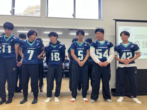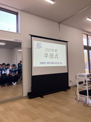 青春アメフト日記〜卒団式編〜 2026年2月24日 オービックシーガルズジュニア(中学生) ♪ 汽車は闇をぬけて 光の海へ夢がちらばる 無限の宇宙さ星の架け橋 わたってゆこう 2025年度卒団式が行われました。卒団生からは、チームメイトに対する熱い想い、オービックシーガルズJr.で闘い抜いたことのプライド、支えてくれた周りの方に対する感謝、各々から素晴らしいコメントを頂きました。 “自分の未来は自分で決める”そう覚悟を決めた卒団生こそ鉄郎。そして、卒団生を優しく見守る周りのメンバーはメーテル。そんな気持ちで送り出した次第です。 後輩達も負けていられません。新幹部から力強い宣言があり、いよいよ2026銀河鉄道OSJが走り始めました。途中、数々の困難が待ち構えているでしょうが闘い抜くしかありません。それが我々に与えられた使命だからです… ♪ひとは誰でも しあわせさがす旅人のようなもの希望の星に めぐりあうまで歩きつづけるだろうきっといつかは 君も出会うさ青い小鳥に 3年生の皆さん、卒団おめでとう。三年間、本当によく頑張りました。これからはOBとして後輩達に胸を貸してほしいと思います。いつでもグラウンドで待っています。